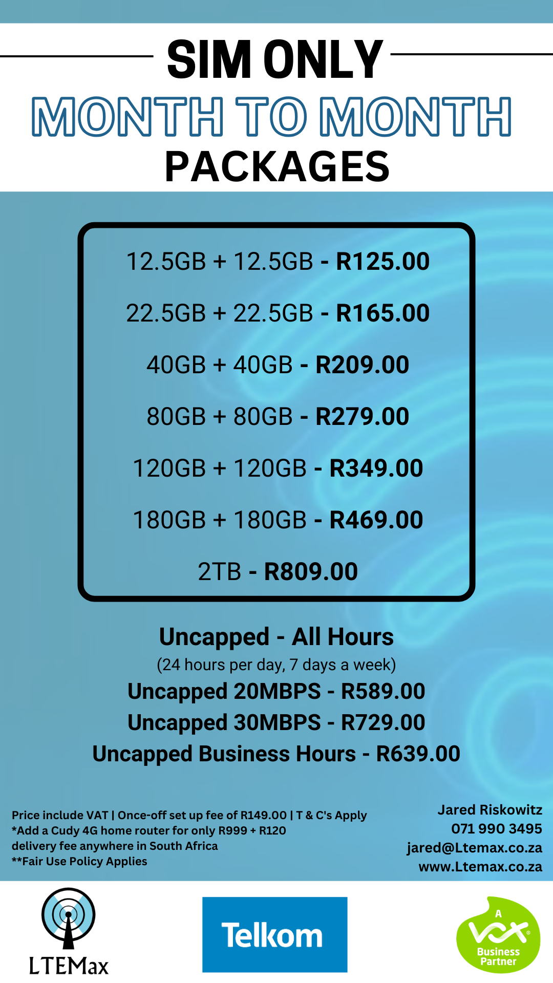 Yes absolutely, all our clients will have access to a Vox app whereby you can top up or we can assist in upgrading your LTE to a new package.